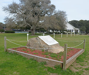 Tablet placed in Southport on a boulder which is part of the original fortification of Fort Johnston, the first fort in the Province. The tablet states that “on this spot the Royal Authority in the Province fell to rise not more”. |